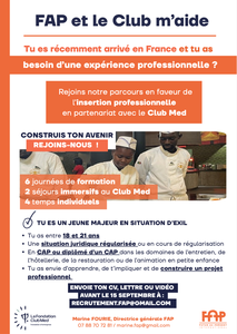 Futur Au Présent International lance un projet d'insertion professionnelle en partenariat avec le Club Med en faveur de l'insertion professionnelle des anciens MNA et jeunes exilés. Ce dispositif vise à accompagner pas à pas des jeunes vers l’emploi à travers un parcours progressif, encadré et individualisé à travers des temps spécifiques :